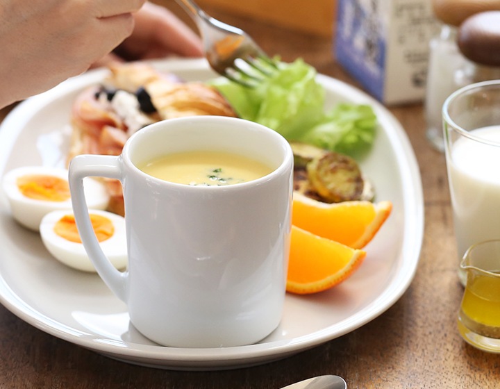 ワンプレートなどに添えるスープカップ代わりに。ポタージュやクラムチャウダーを入れたりしてもよく似合います。